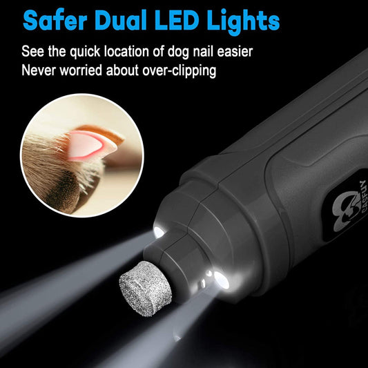 Dog Nail Grinder with 2 LED Light - New Version 2-Speed Powerful Electric Pet Nail Trimmer Professional Quiet Painless Paws Grooming & Smoothing for Small Medium Large Dogs and Cats (Grey)